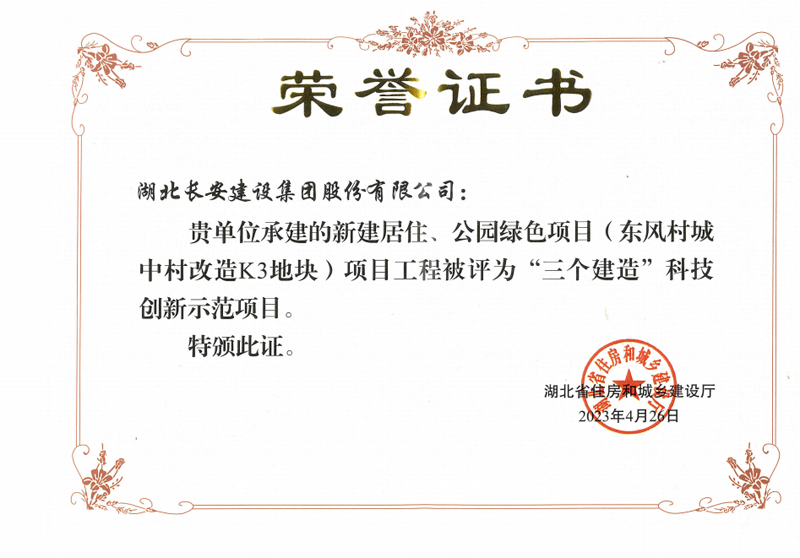 東風村城中村改造k3地塊項目獲評“三個建造”科技創新項目