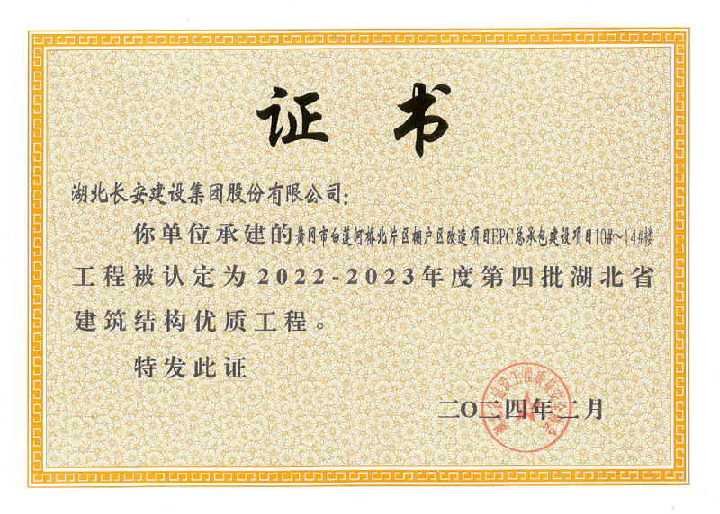 黃岡市白蓮河橋北片區棚戶區改造項目等4個工程被評為2022-2023年度第四批湖北省建筑結構優質工程