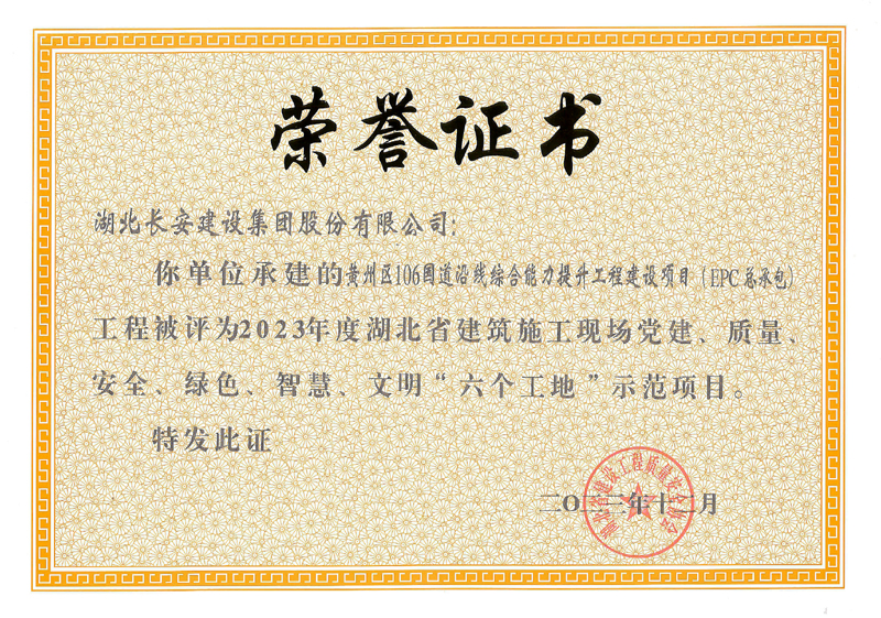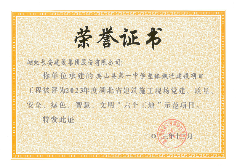 英山縣一中搬遷工程、黃州區106國道沿線工程獲評“2023年度湖北建筑施工現場六個工地”
